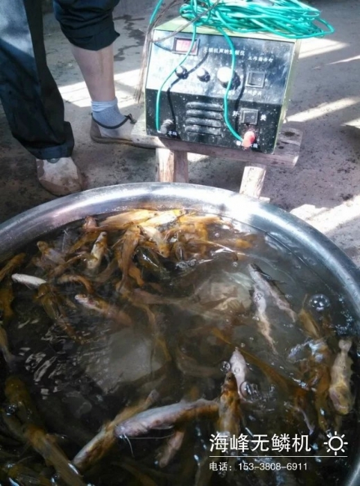 大河無鱗魚專用捕魚器使用12V電瓶帶動(也可以定做24V的),其工作原理是利用聲納刺激無鱗魚神經系統,使其在水里受不了從而游到水面。對其他有鱗魚是沒有效果的,無鱗魚機工作的時候摸水也是沒有感覺的,不會跟有鱗魚機那樣有電麻手。